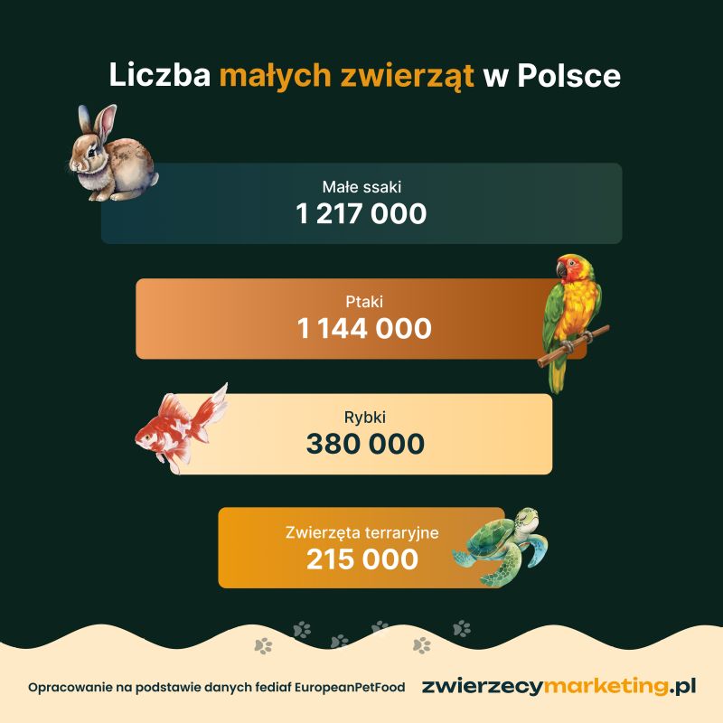 Szacowana liczba small mammals w Polsce to (wg FEDIAF) ~1 217 000 osobników.